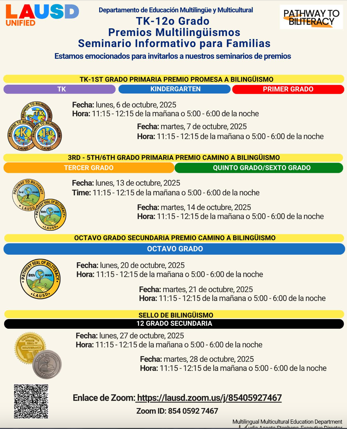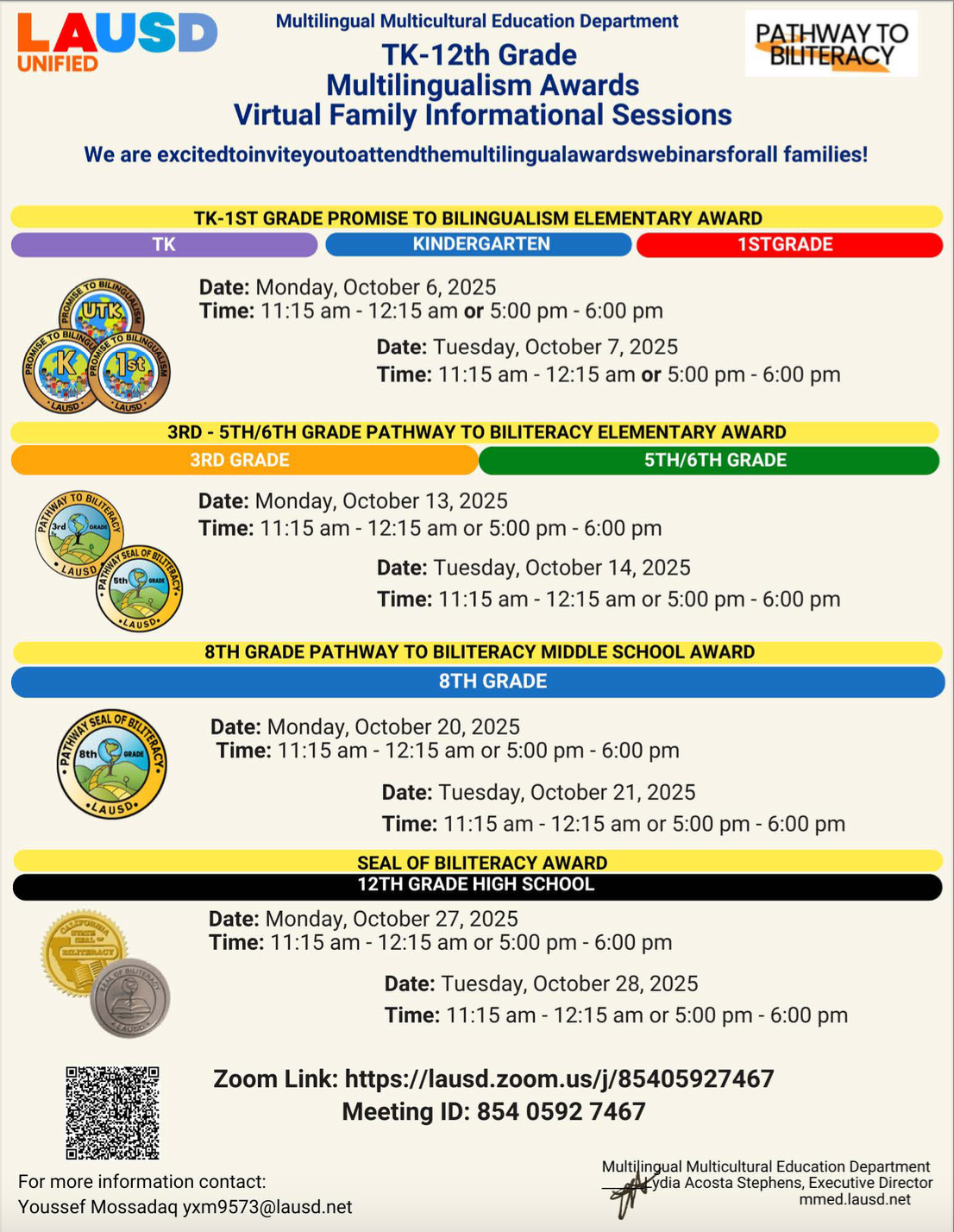 TK- 5th Grade Multilingualism Awards Virtual Family Informational Sessions